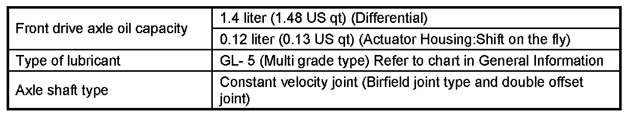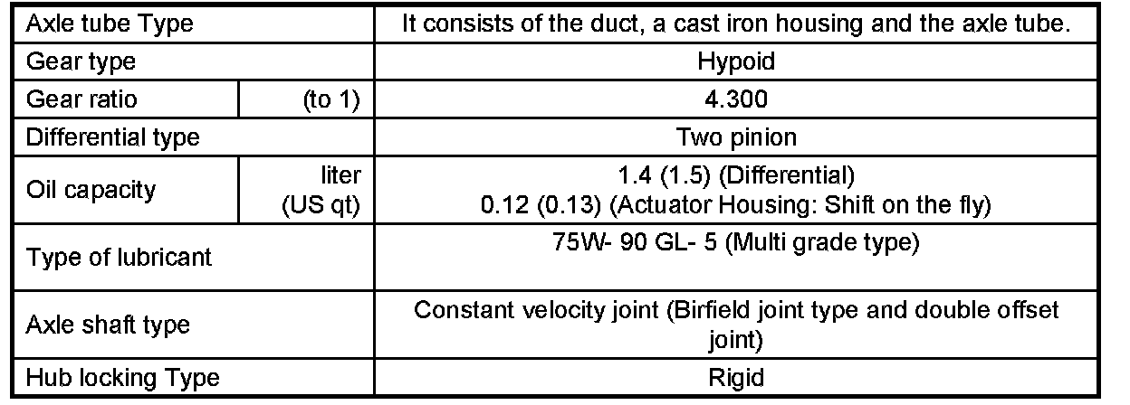 FRONT DIFFERENTIALGENERAL SPECIFICATIONS