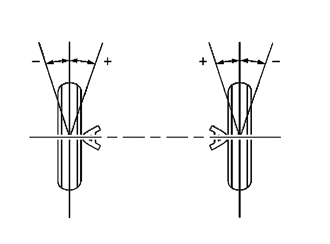 Toe is a measurement of how much the front and/or rear wheels are turned in or out from a straight-ahead position. When the wheels are turned in, toe is positive (+). When the wheels are turned out, toe is negative (-). The actual amount of toe is normally only a fraction of a degree. The purpose of toe is to ensure that the wheels roll parallel.
