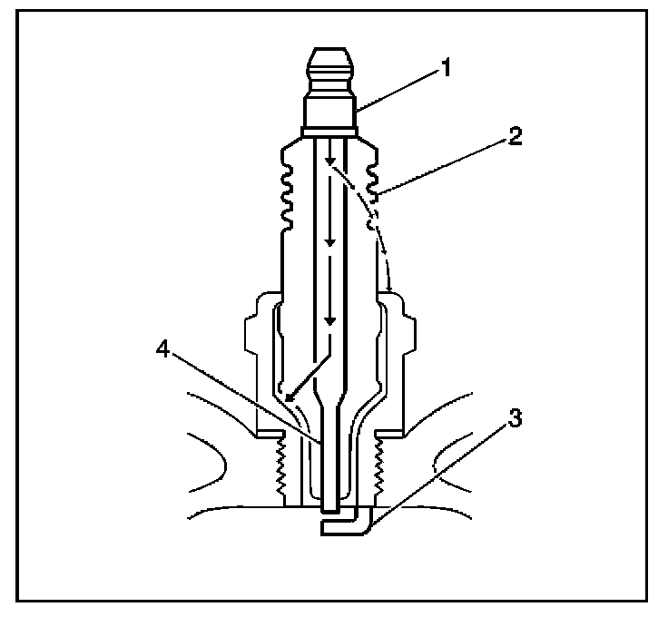 - Inspect for the correct spark plug torque.Insufficient torque can prevent correct spark plug operation. An over torqued spark plug, causes the insulator (2) to crack.