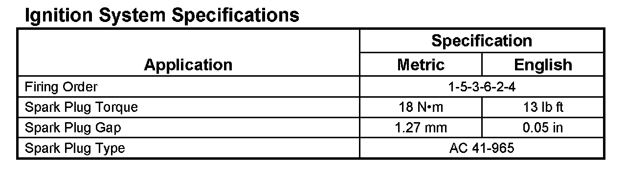 Ignition System Specifications 4.2L: