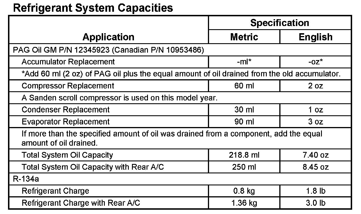 Refrigerant System Capacities: