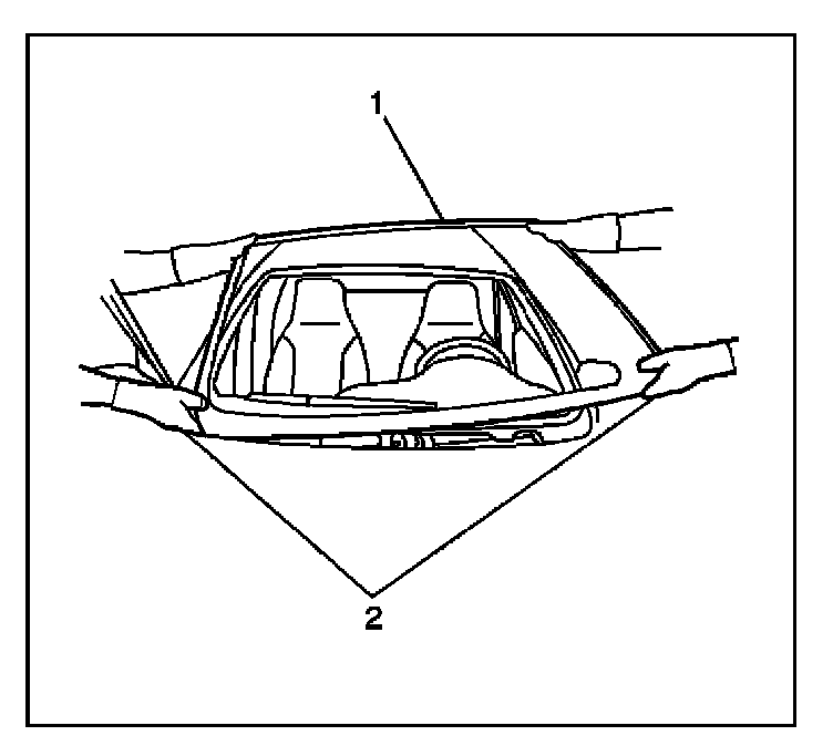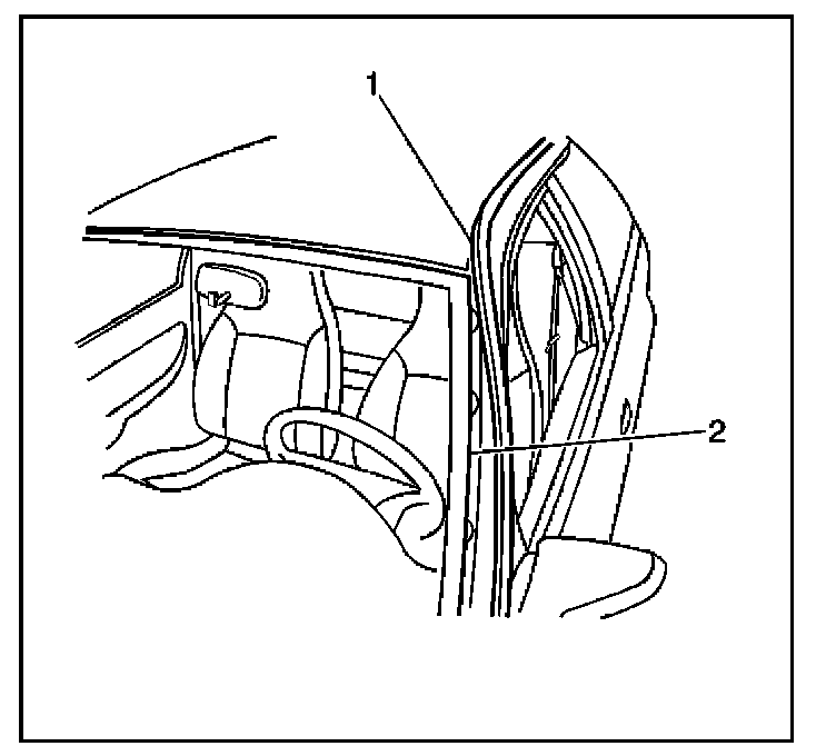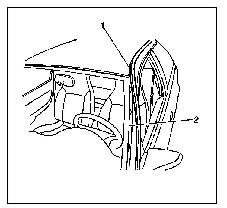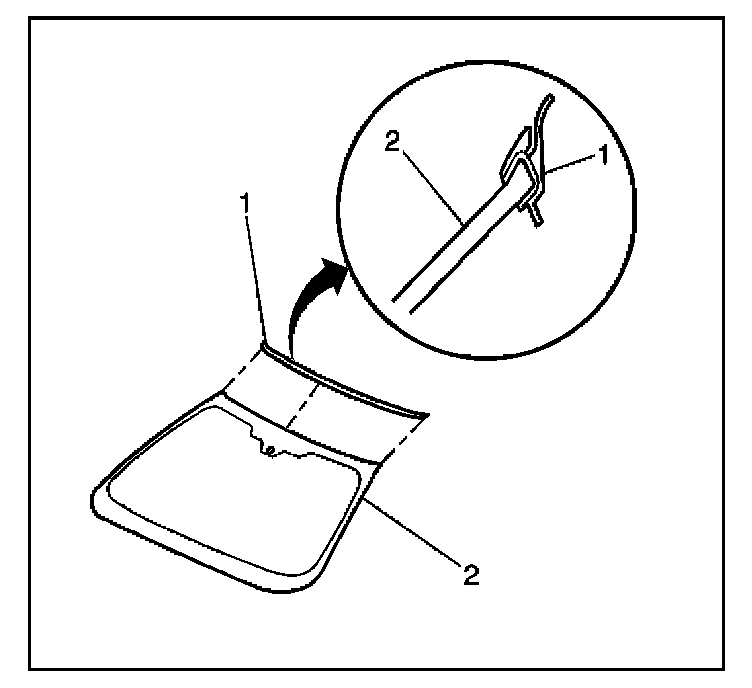 IMPORTANT: The upper windshield reveal molding (1) fills the cavities between the body and windshield.