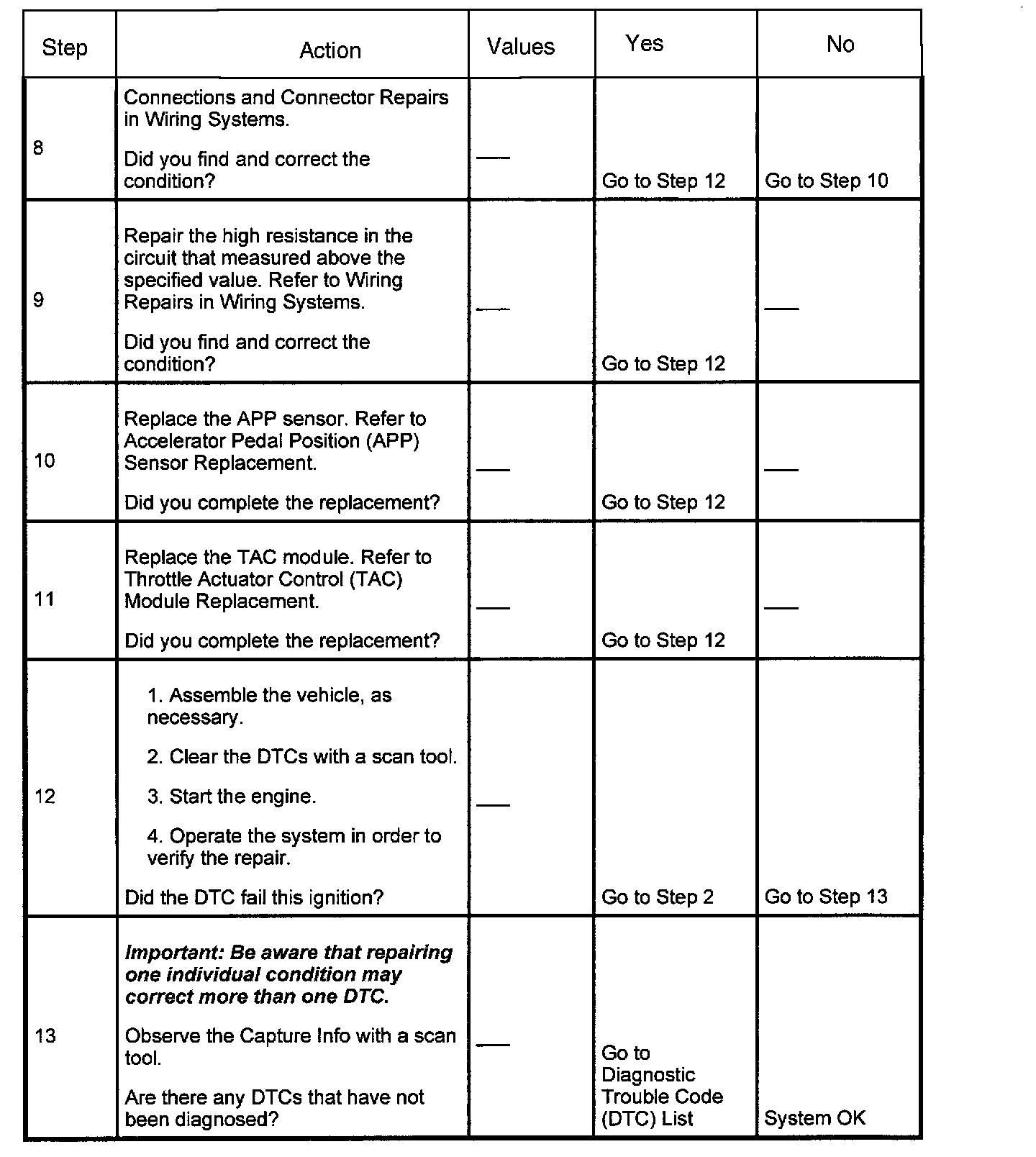 ^ When the TAC module detects a condition within the TAC system, more than one (1) TAC system related DTC may set. This is due to the many redundant tests run continuously on this system. Locating and repairing one (1) individual condition may correct more than one (1) DTC. Remember this if you review the information stored in Captured Info.