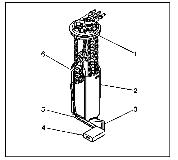 The fuel level sensor consists of a float, a wire float arm, and a ceramic resistor cord. The position of the float arm indicates the fuel level. The fuel level sensor contains a variable resistor, which changes resistance in correspondence to the amount of fuel in the fuel tank. The powertrain control module (PCM) sends the fuel level information via the class 2 circuit to the instrument panel (I/P) cluster. This information is used for the I/P fuel gauge and the low fuel warning indicator, if applicable. The PCM also monitors the fuel level input for various diagnostics.