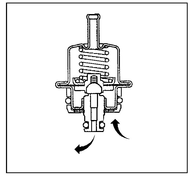 The fuel pressure regulator is a vacuum-operated diaphragm relief valve with fuel pump pressure on one side, and with regulator spring pressure and intake manifold vacuum on the other side. The fuel pressure regulator maintains a constant pressure differential across the fuel injectors at all times. The fuel pressure regulator compensates for engine load by increasing the fuel pressure when the engine vacuum drops.
