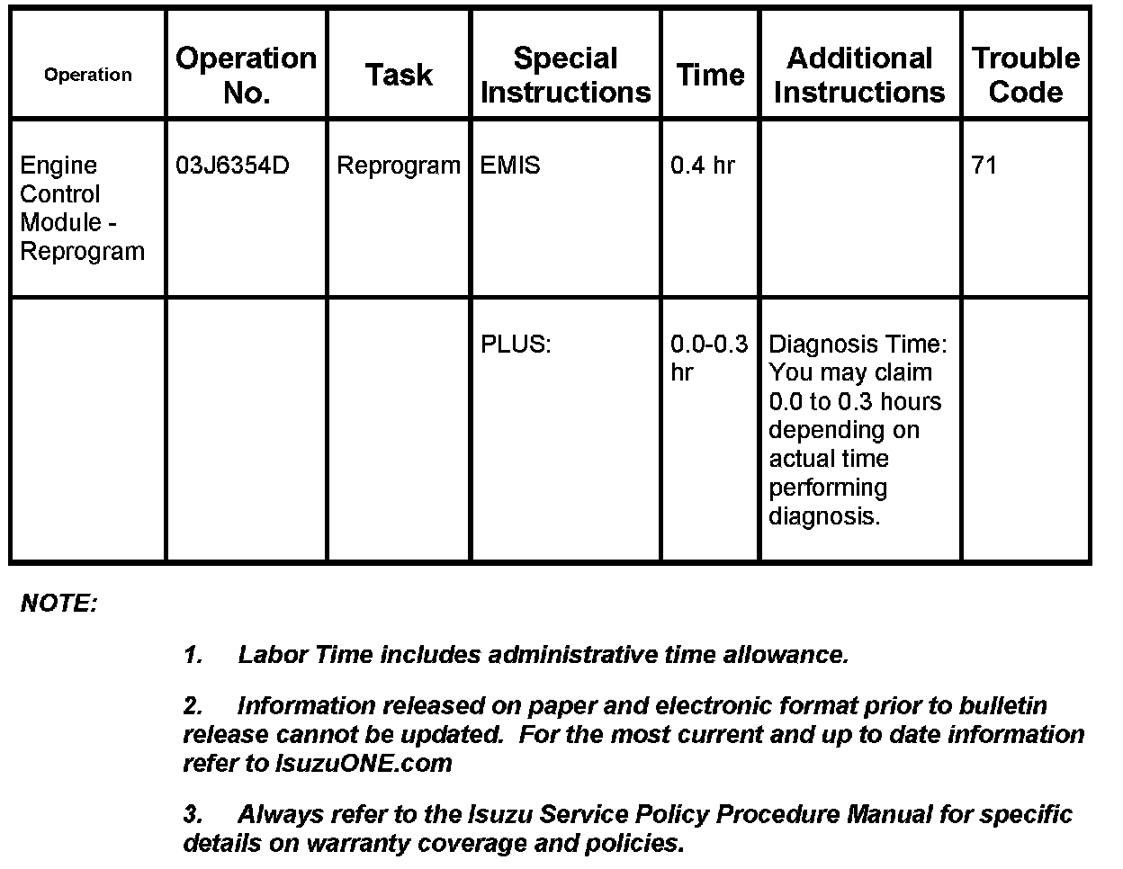 Reprogram the Powertrain Control Module (PCM) with a new service calibration released with ITCS CD version 34 or newer.