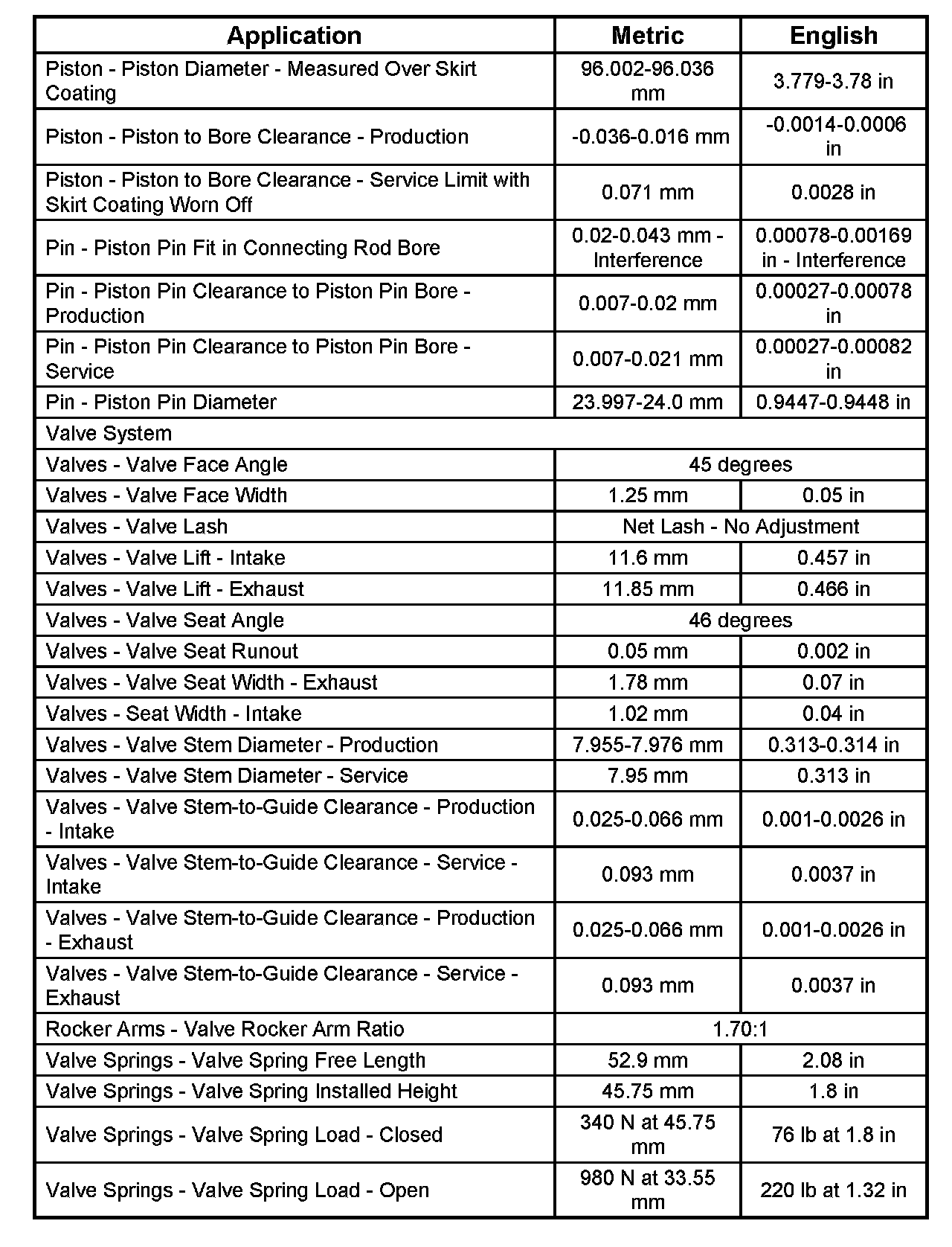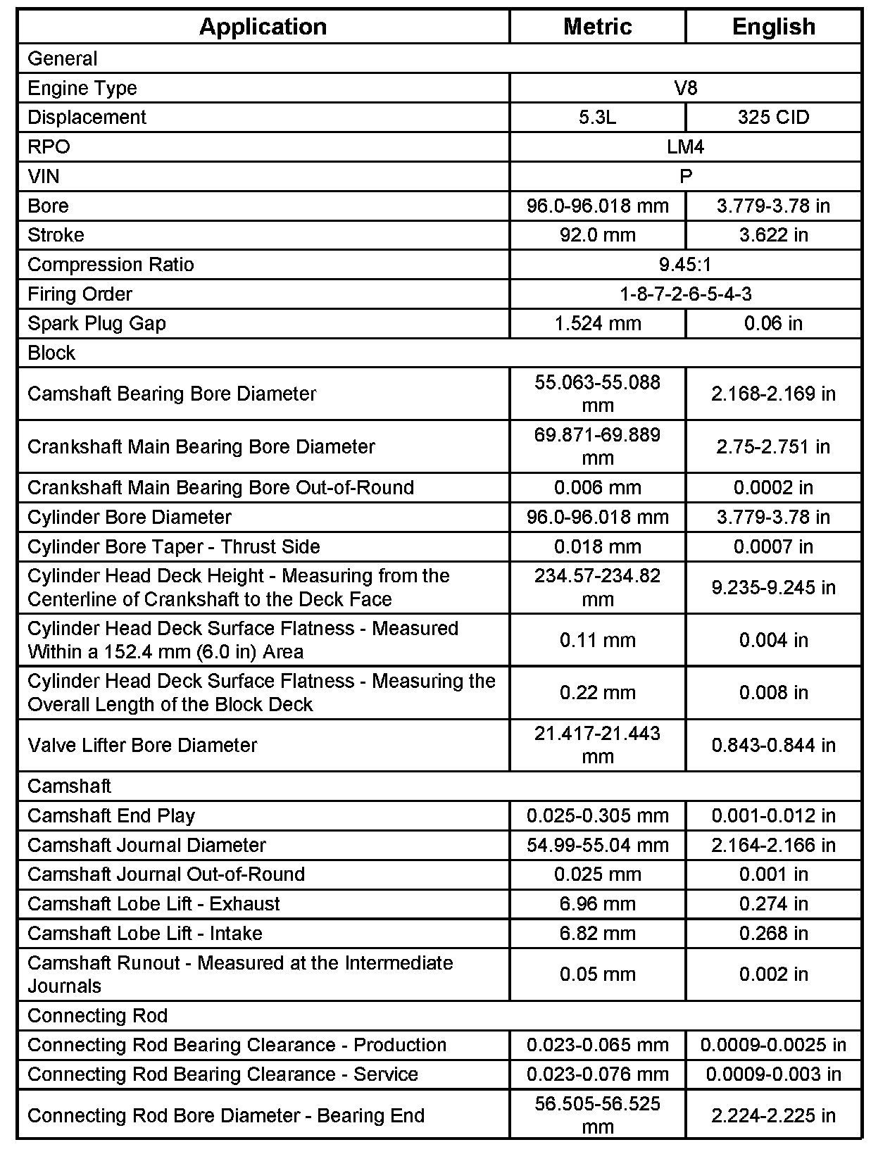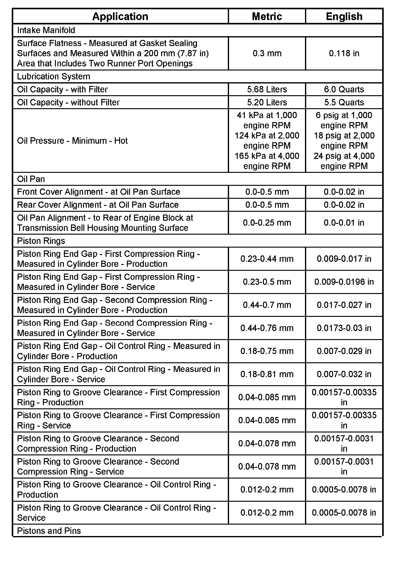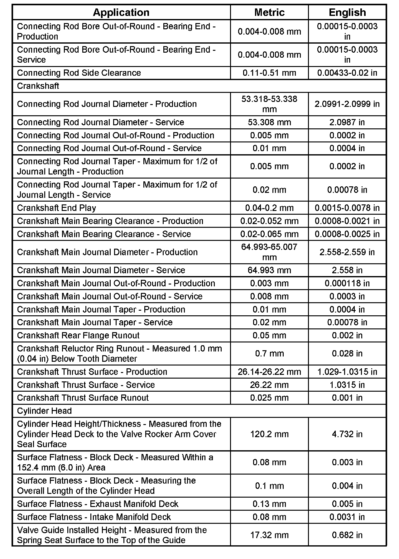 Engine Mechanical Specifications