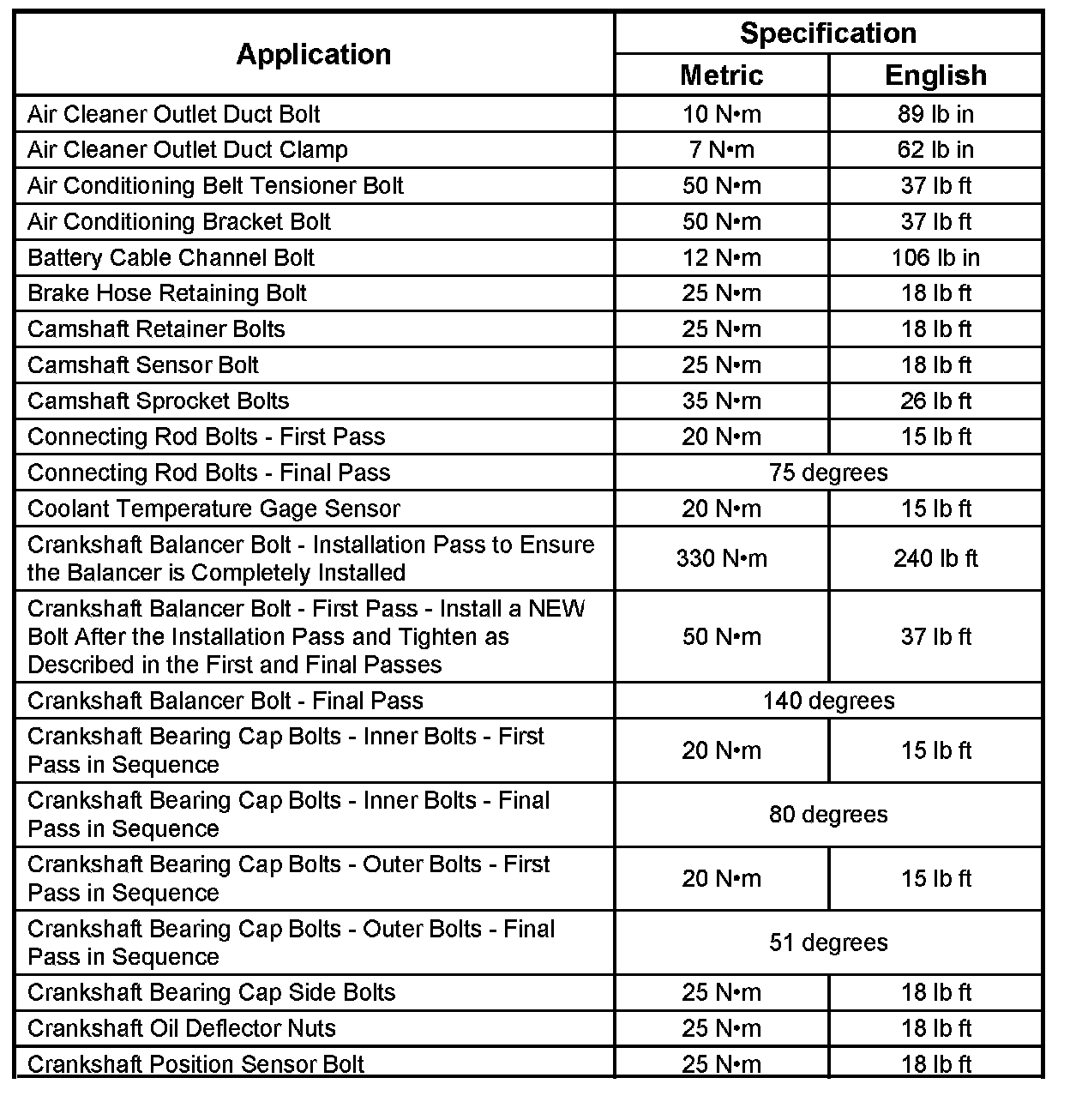 Fastener Tightening Specifications