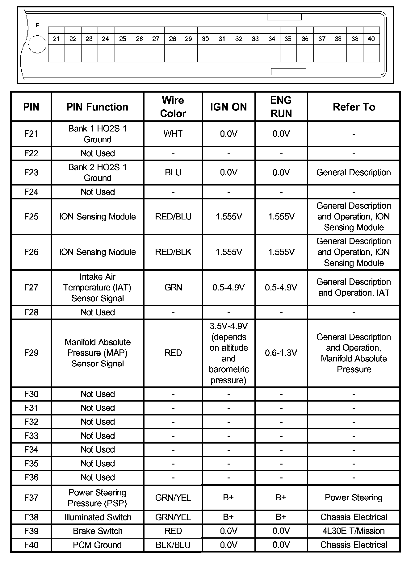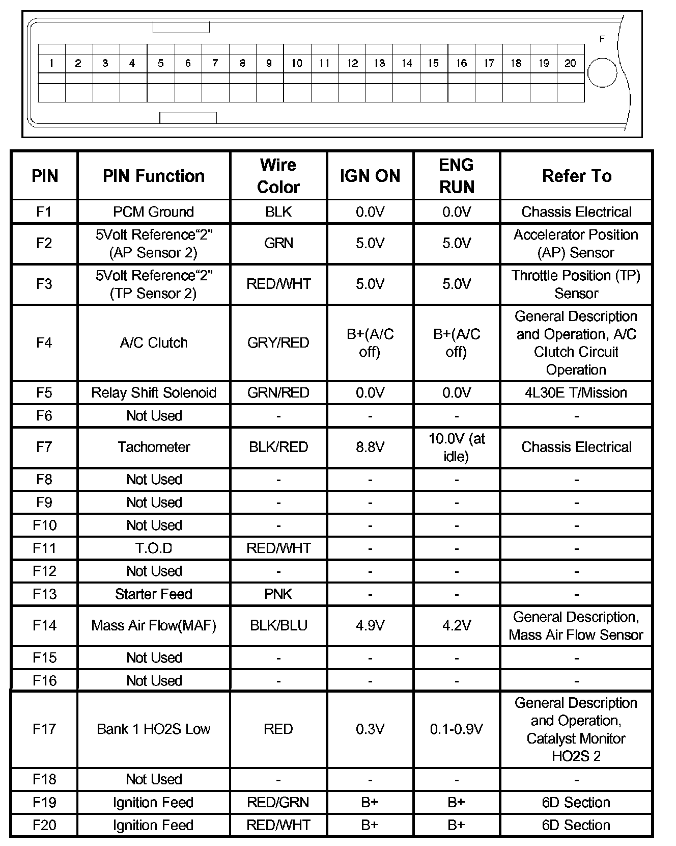 PCM Pinout Table, 80-Way Blue Connector _ Row"F20 - 40" - View/Index: