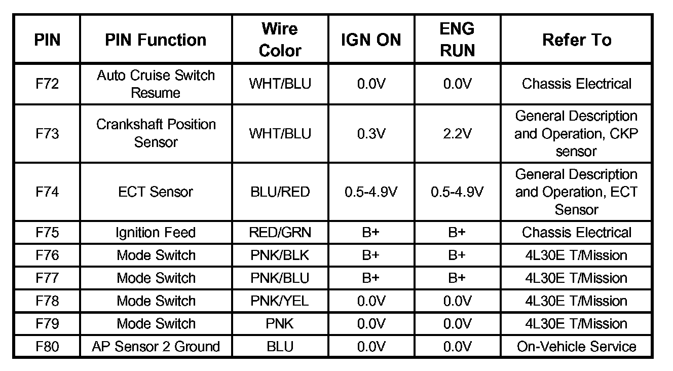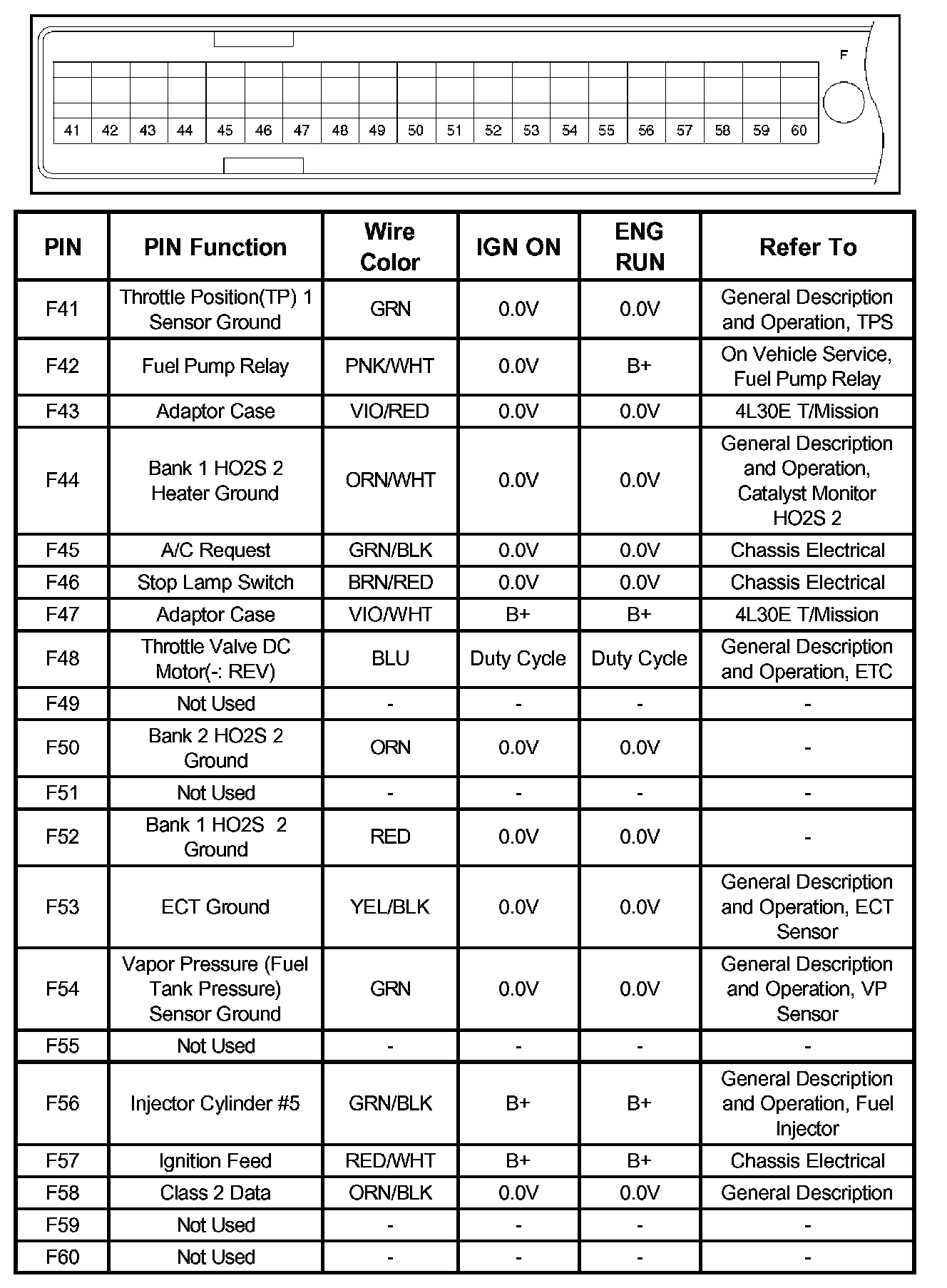 PCM Pinout Table, 80-Way Blue Connector _ Row"F41 - 60" - View/Index:
