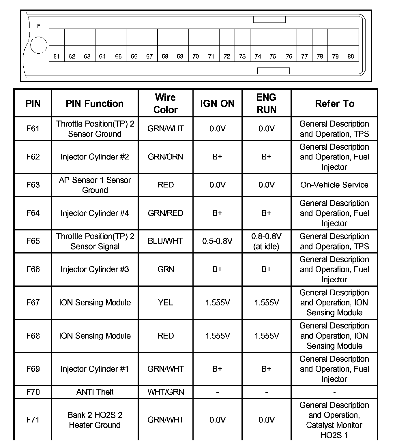 PCM Pinout Table, 80-Way Blue Connector _ Row"F61 - 80" - View/Index - 2: