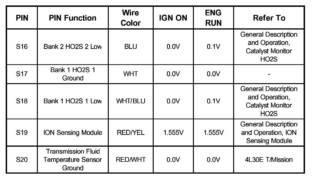 PCM Pinout Table, 80-Way Red Connector _ Row"S1 - 20" - View/Index - 2: