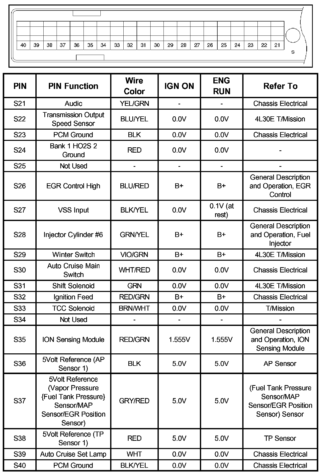 PCM Pinout Table, 80-Way Red Connector _ Row"S21 - 40" - View/Index: