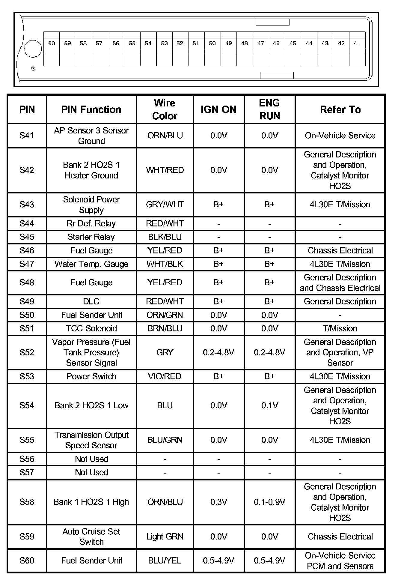 PCM Pinout Table, 80-Way Red Connector _ Row"S41 - 60" - View/Index: