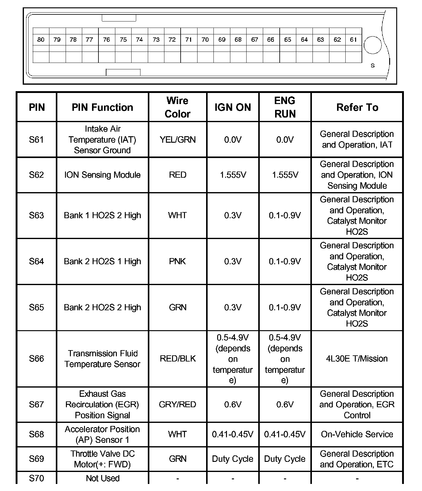 PCM Pinout Table, 80-Way Red Connector _ Row"S61 - 70" - View/Index - 1: