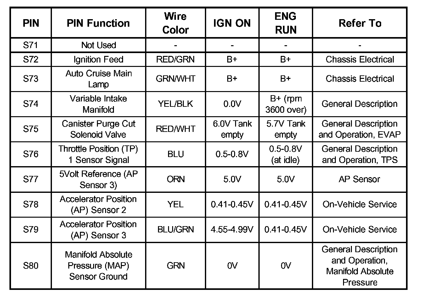 PCM Pinout Table, 80-Way Red Connector _ Row"S71 - 80" - View/Index - 2: