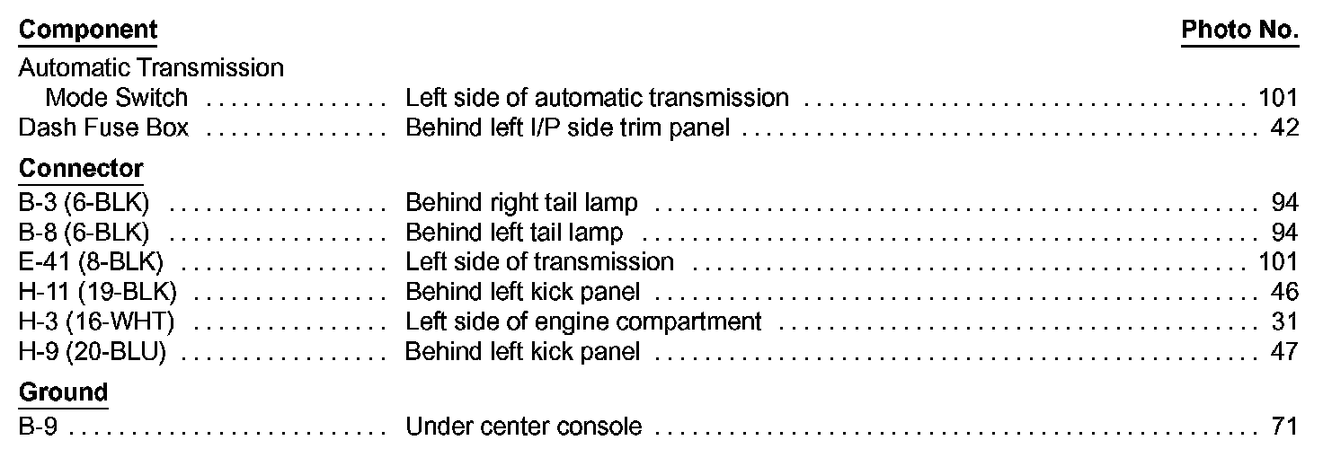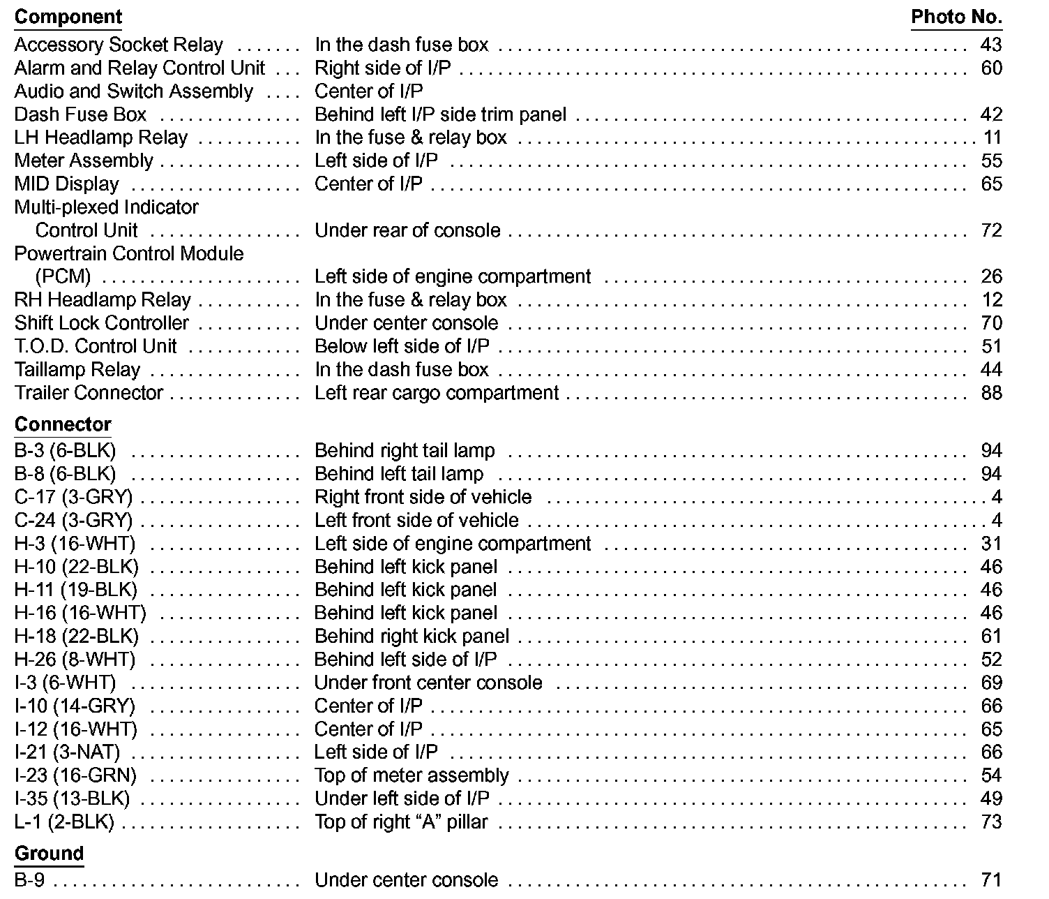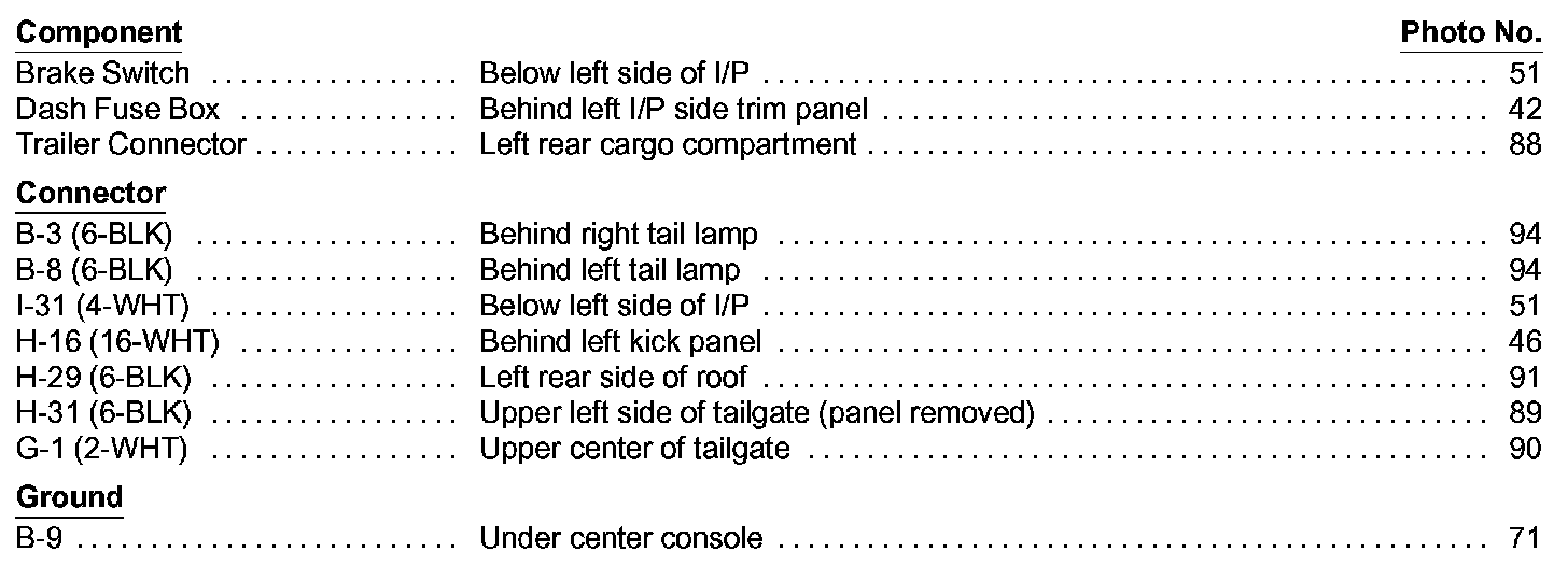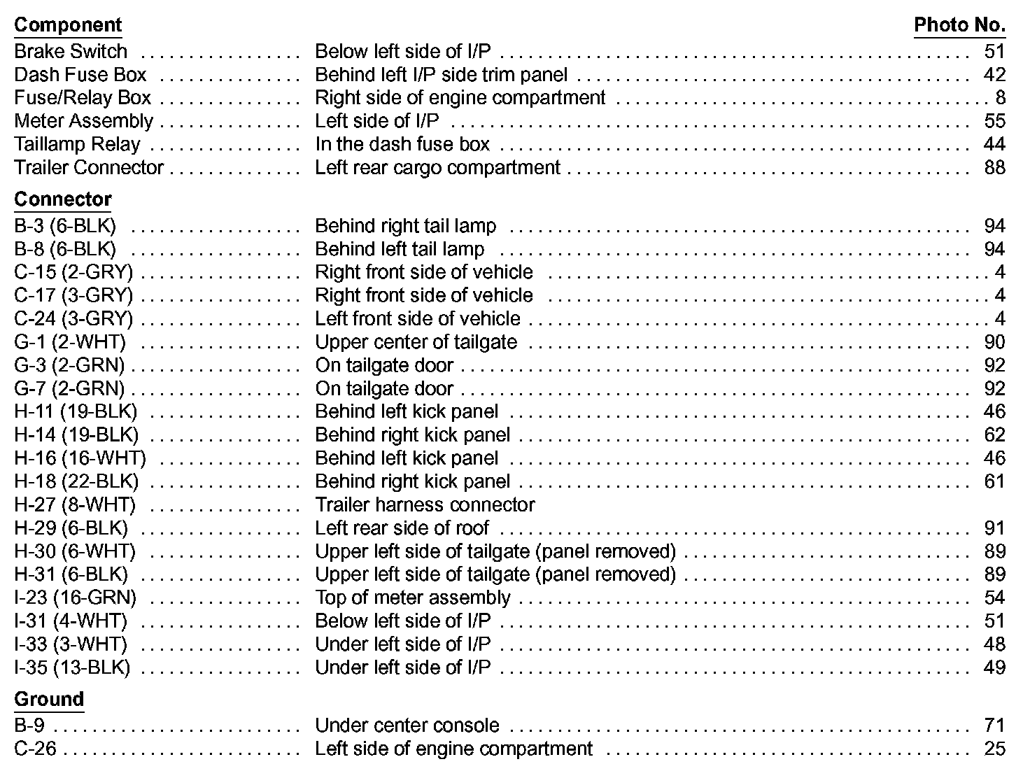 Park, Tail And License Lamps Component Location Index Image 110-2: