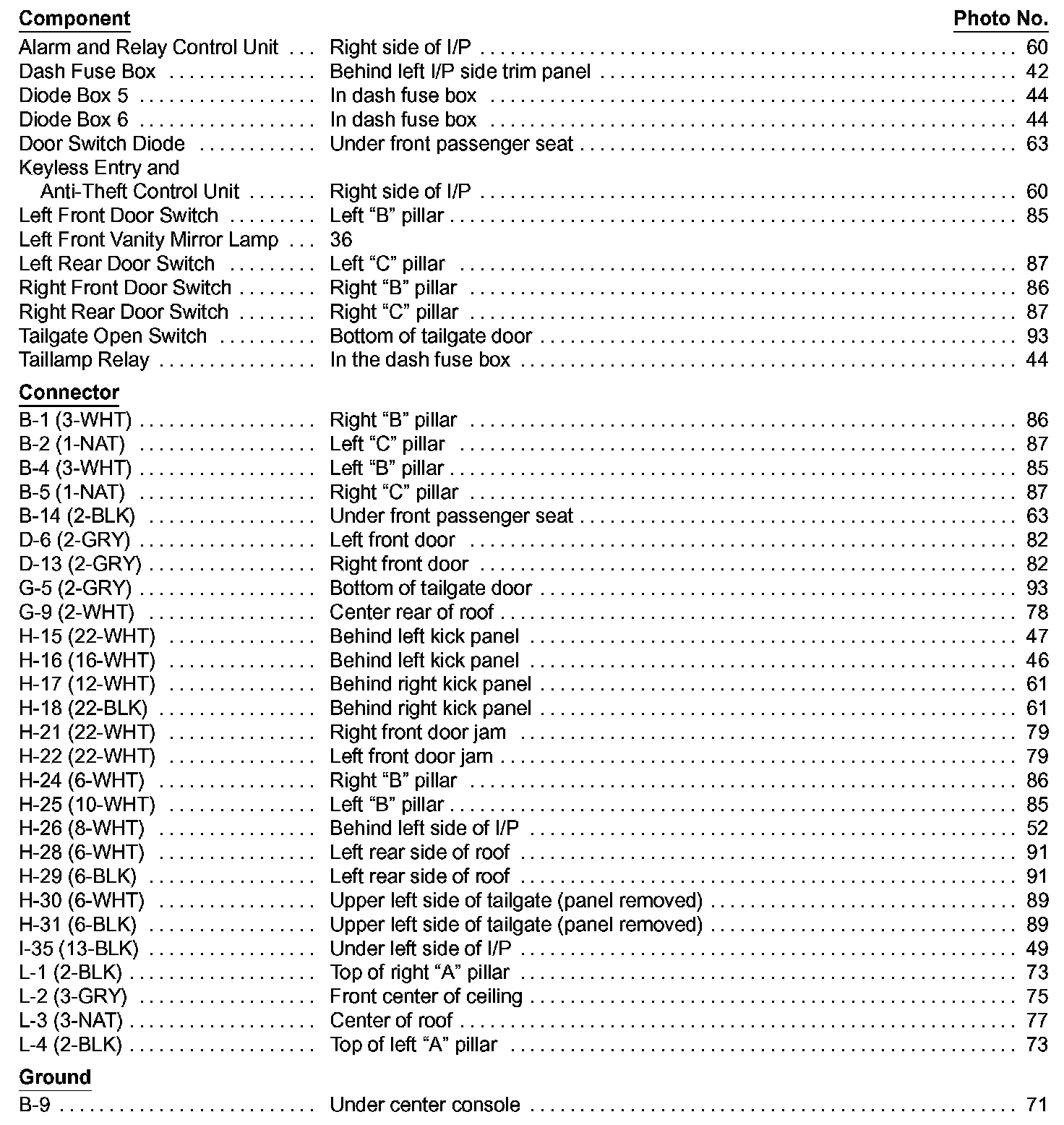 Room, Luggage Room, Courtesy, MAP And Vanity Lamps Component Location Index Image 114-3: