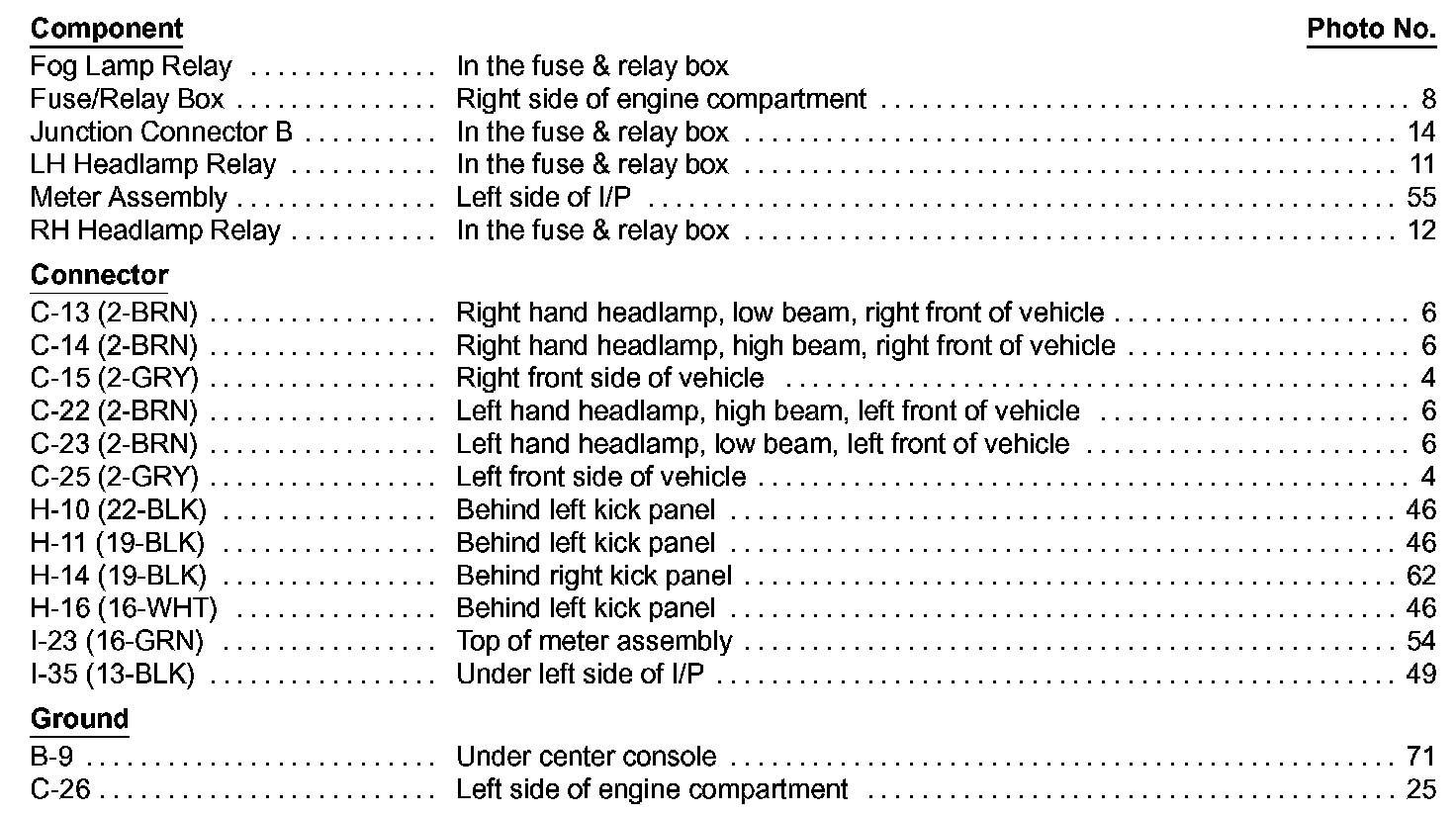 Headlights And Fog Lights Component Location Index Image 100-2: