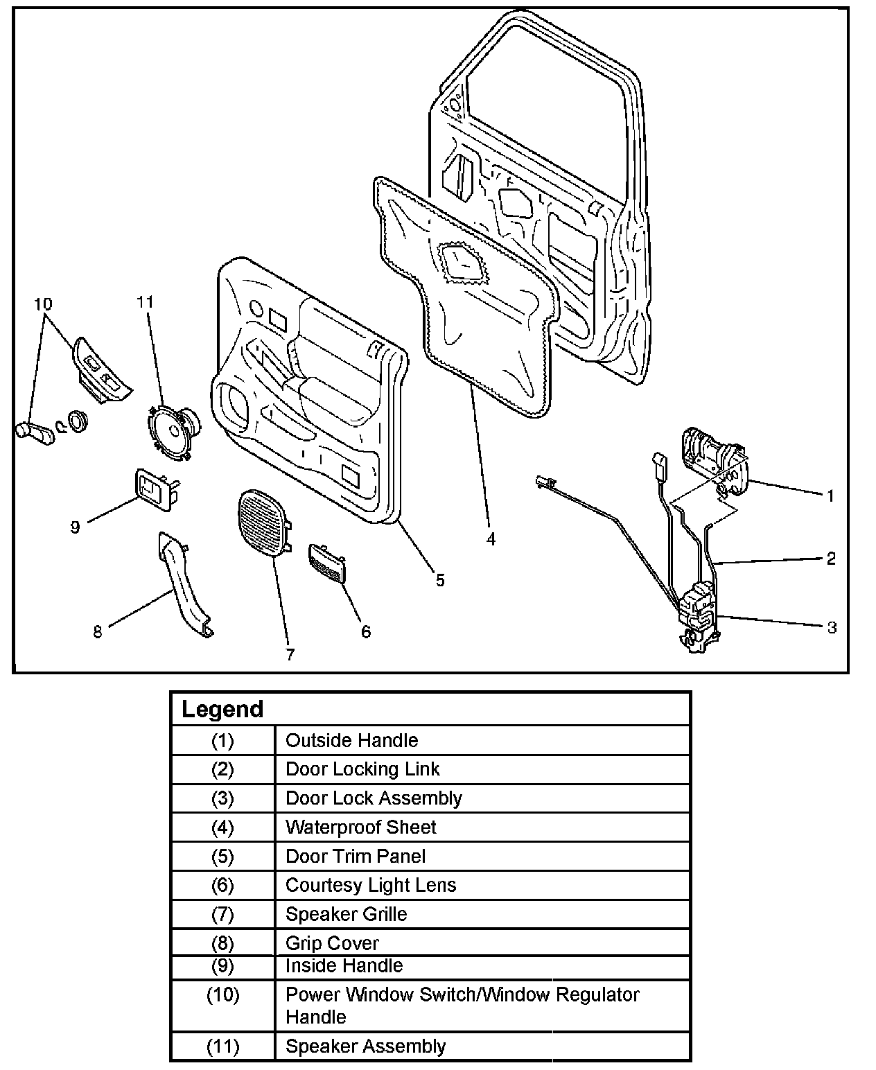 Front Door Lock Assembly And Associated Parts: