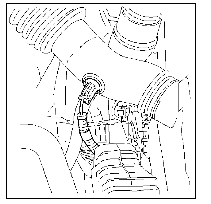 1. Install the IAT sensor into intake air duct. Make sure the sensor is pushed all the way into the intake air duct.