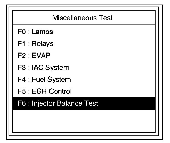 4. Select F6: Injector Balance Test in the Miscellaneous Test.