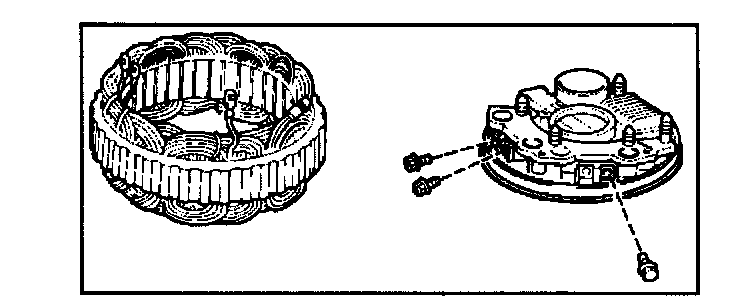 7. Remove bolts which secure stator terminal to rectifier terminal, and remove stator.
