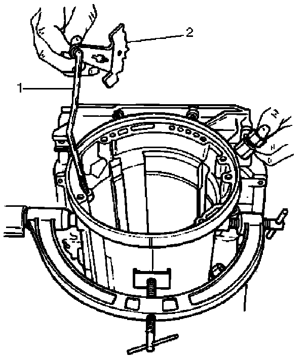 - Adjust the brake band by tightening the servo adjusting screw to 4.5 Nm torque. Be certain the lock nut is loose, then back-off the screw five turns exactly. Hold piston sleeve with wrench and tighten lock nut to 18.5 Nm torque. Be certain the adjusting screw does not turn.