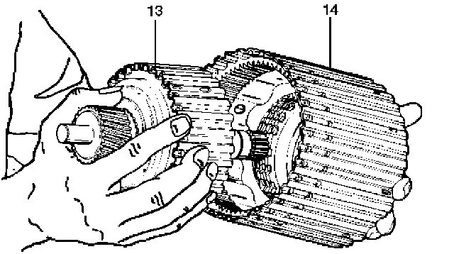 17. Install third clutch and intermediate shaft assembly (13) into the second clutch drum (14).