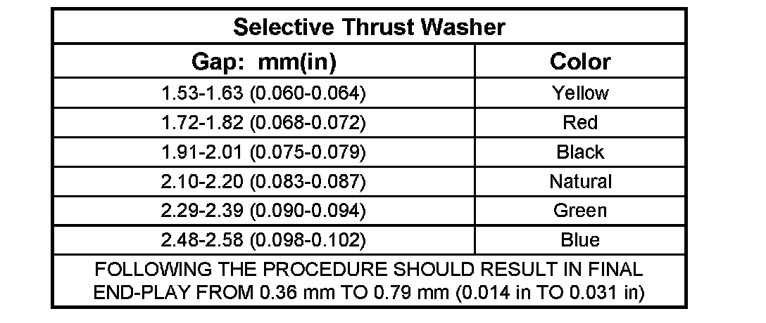 6. Measure the gap and select appropriate washer as shown in the chart.