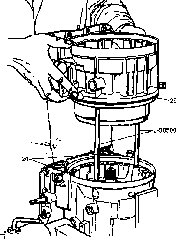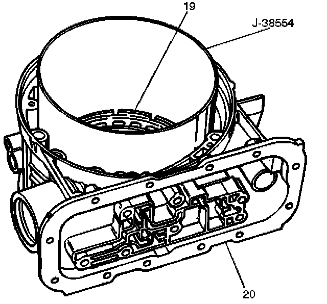 - Lubricate J-38554 fourth clutch piston fitter and install it on fourth clutch piston (19).