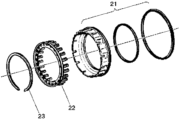24. Install retainer and spring assembly (22) into fourth clutch piston (21).