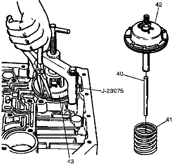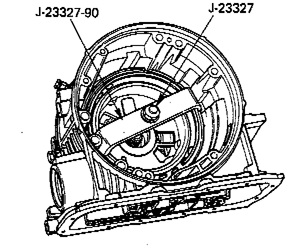 - Install J-23327 and J-23327- 90 fourth clutch spring compressor.