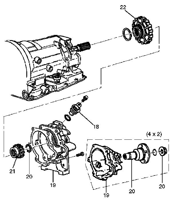 - Remove one 10 mm screw, and speed sensor (18) with "O" ring.