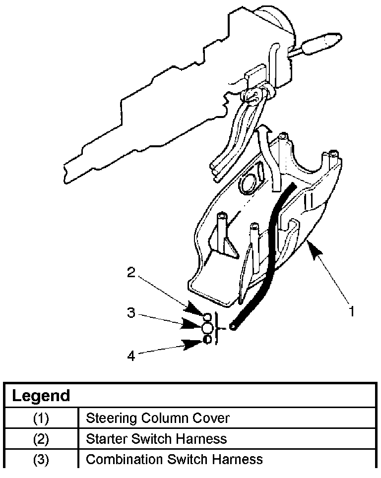 17. Disconnect the starter switch harness connector located under the steering column then remove lock cylinder assembly.