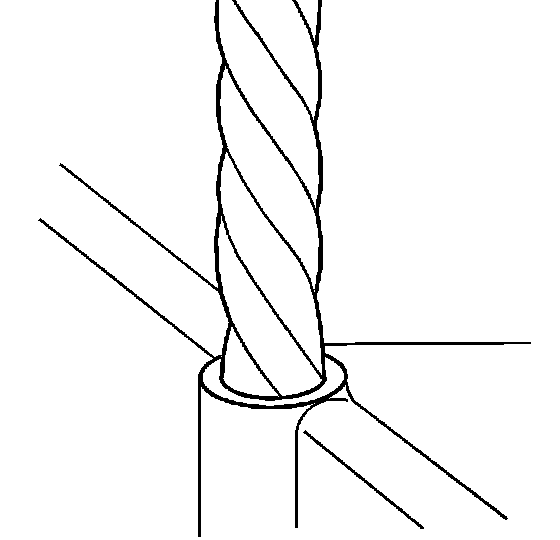 ^ During the drilling process, it is necessary to repeatedly remove the drill and clean chips from the hole and the flutes of the drill.