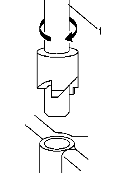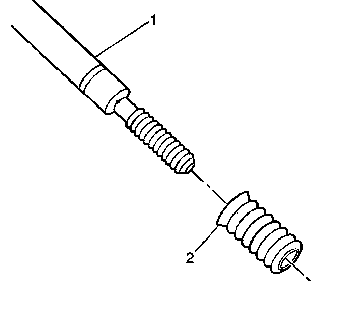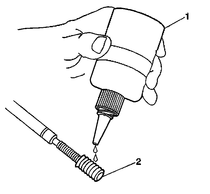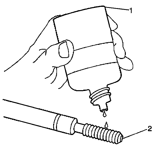 9. Lubricate the threads of the driver installation tool (2) with the driver oil (1) J 42385-110.