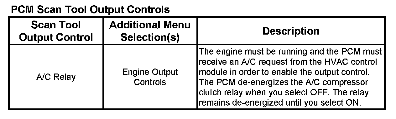 PCM Scan Tool Output Controls: