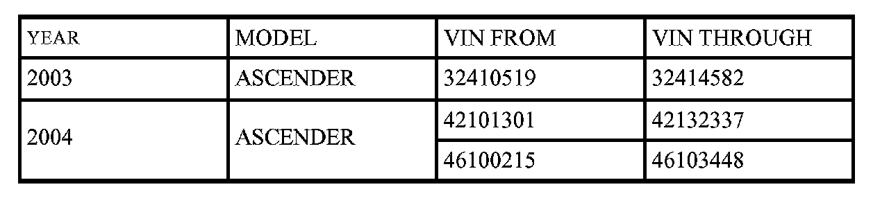 2003-2004 Isuzu Ascender (US/UT) models equipped with 4.2L engines (RPO: LL8) built within the VIN breakpoints shown.