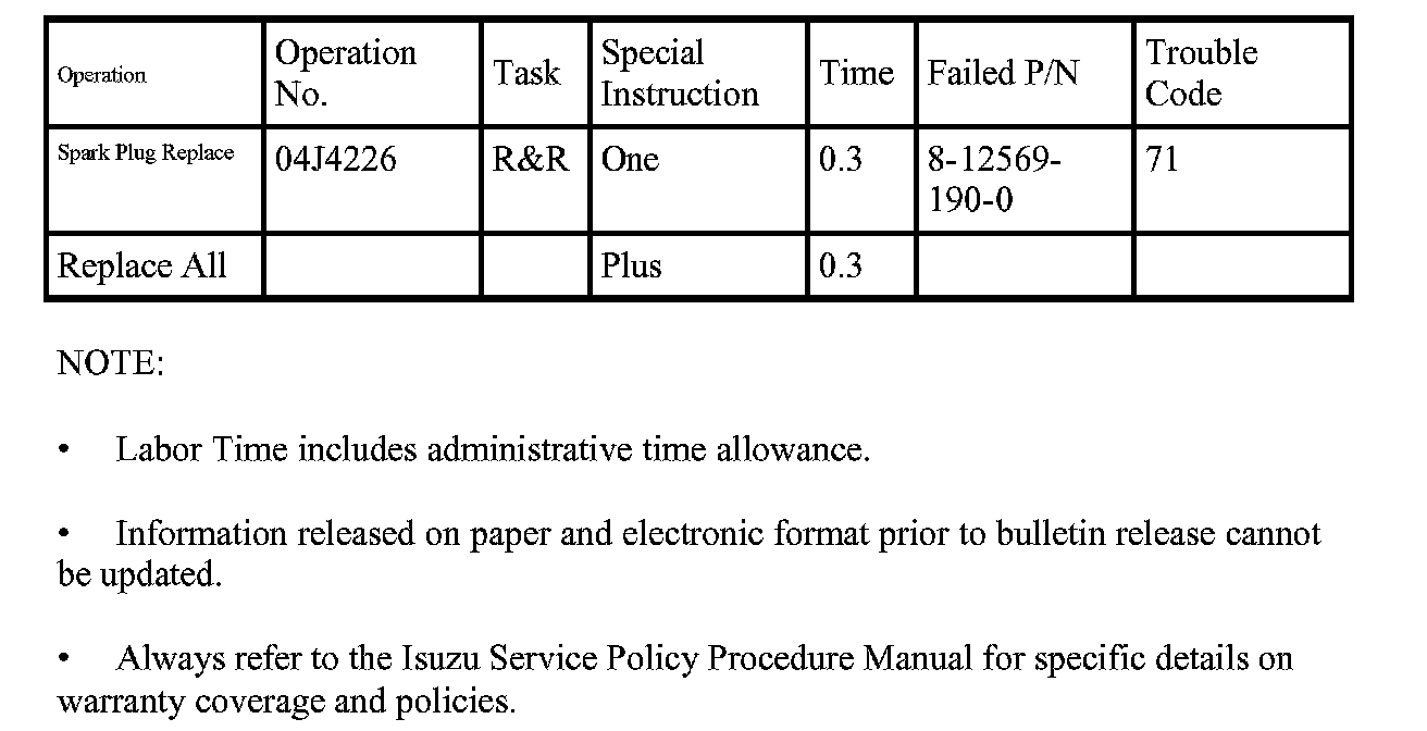 ^ If the date code on the spark plug is 154, 155, or 156, REPLACE ALL OF THE SPARK PLUGS.