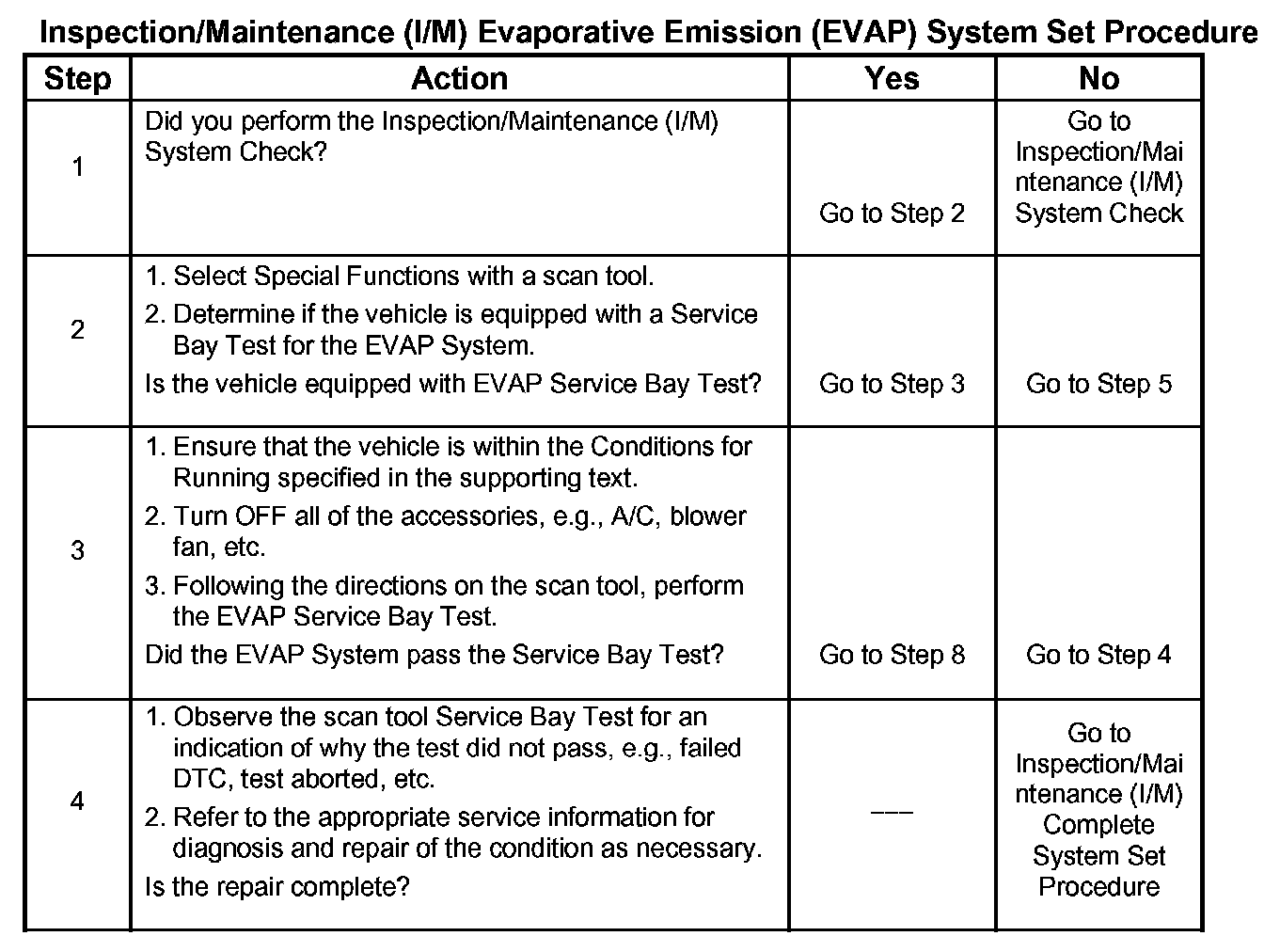 Inspection/Maintenance (I/M) Evaporative Emission (EVAP) System Set Procedure