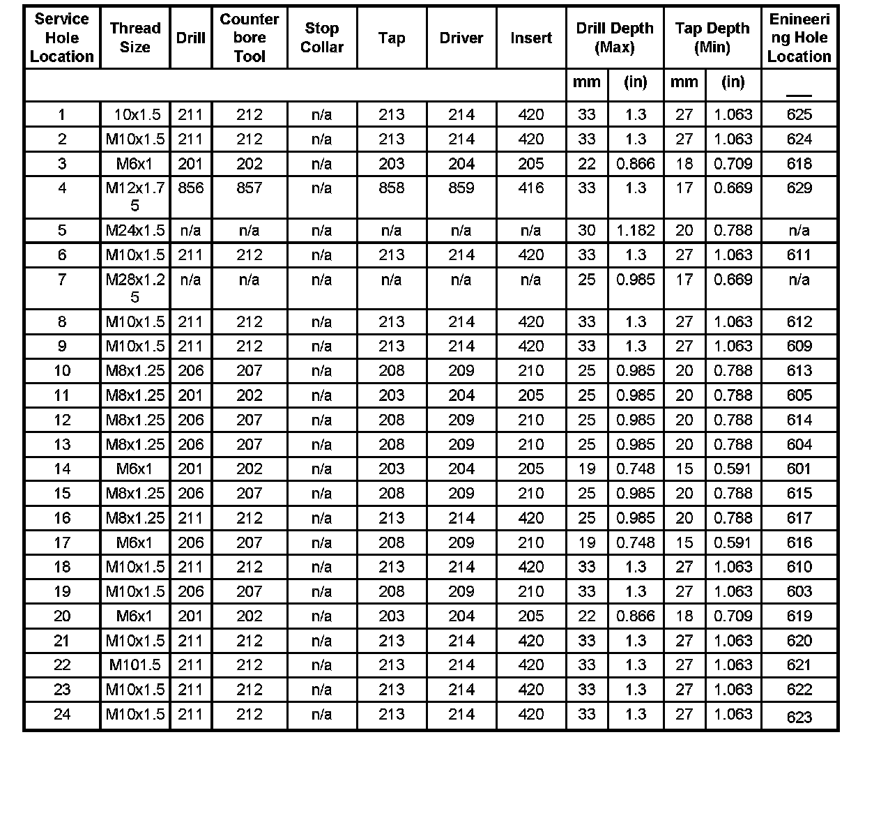 Thread Repair Specifications