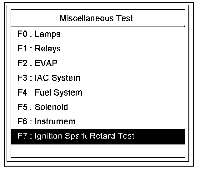 4. Select F7: Ignition Spark Retard Test in the Miscellaneous Test.