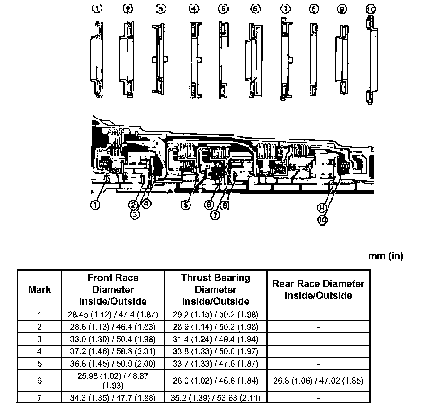 8. Be sure to install the thrust bearings and races in the correct direction and position.