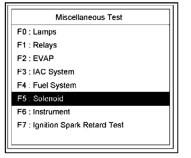 4. Select F5: Solenoid Test in the Miscellaneous Test.