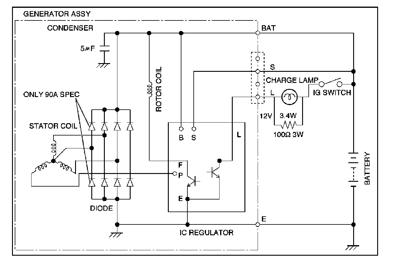 3. Switch on, engine stopped, light should be on. If not, detach harness at generator, ground "L" terminal lead.