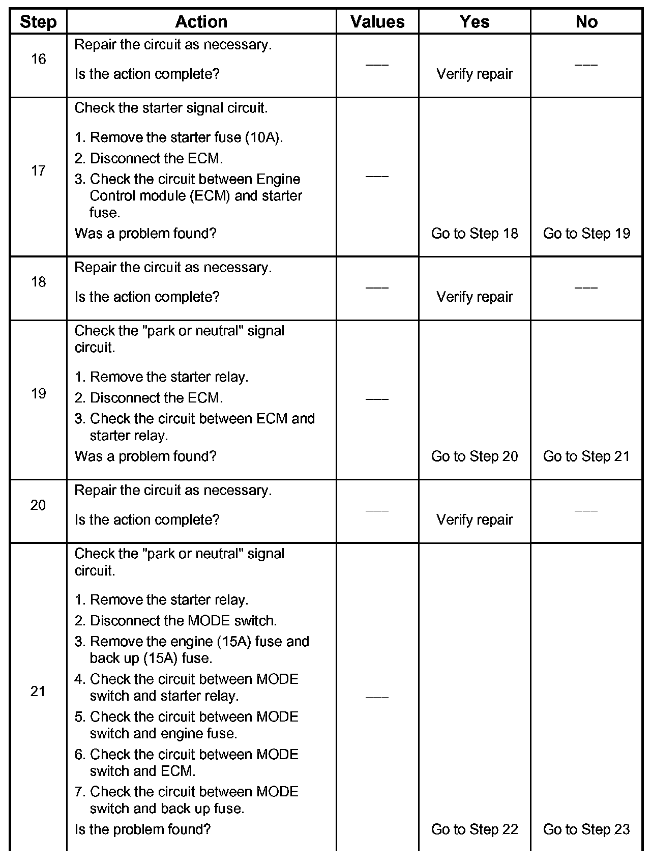 Starter control system is controlled by the Engine Control Module (ECM). The ECM monitors starter switch signal ("START" position) and MODE switch (park or neutral) signal. ECM is operated by the ignition switch.