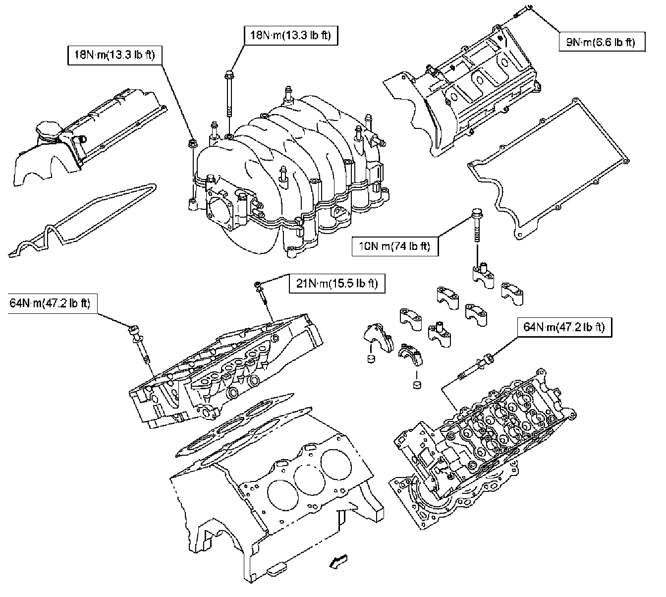 Tighten all the bolts to the specified torque in the order shown.