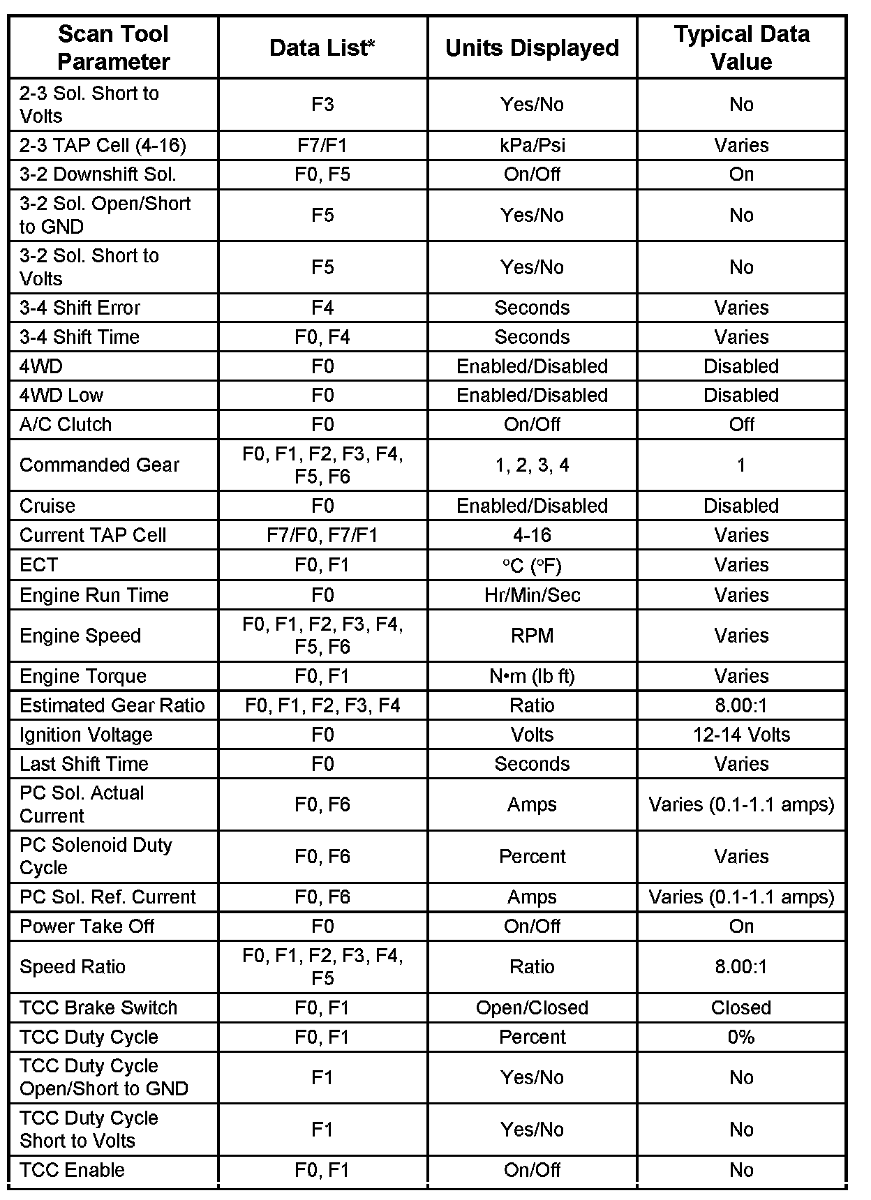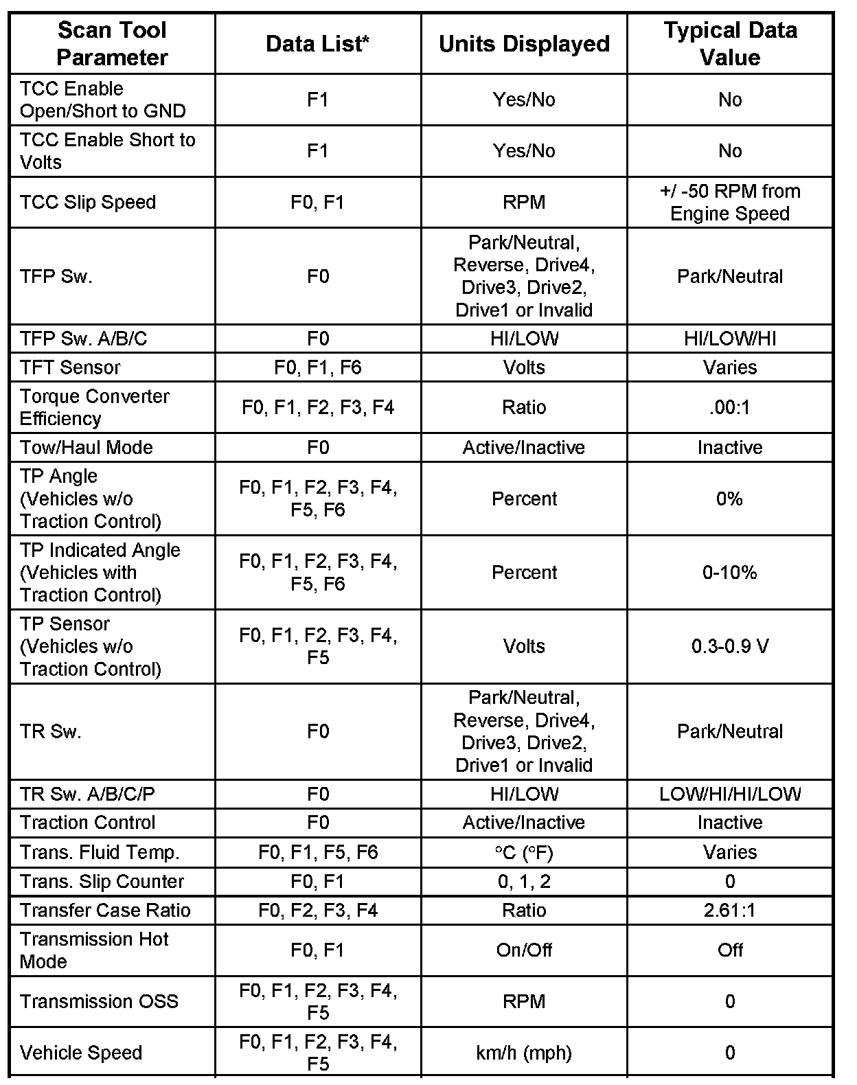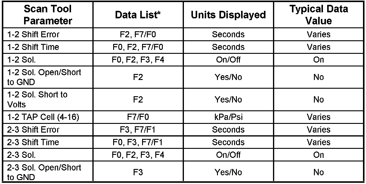Transmission Scan Tool Data List