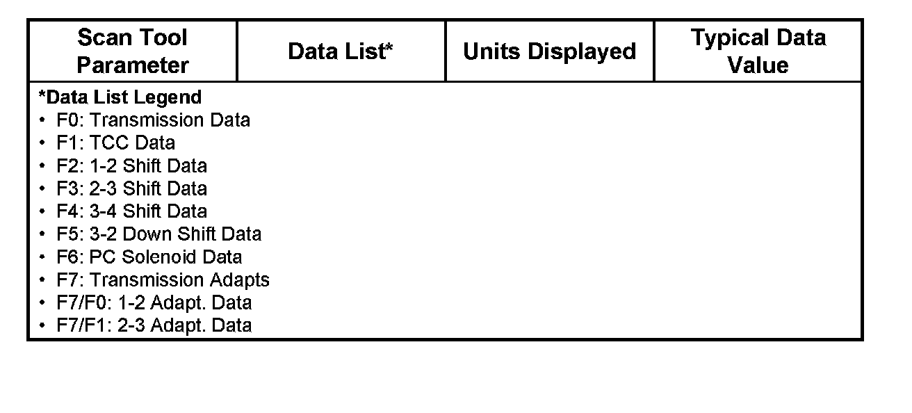 Transmission Scan Tool Data List (5.3L)Use the scan tool data list under the following conditions: